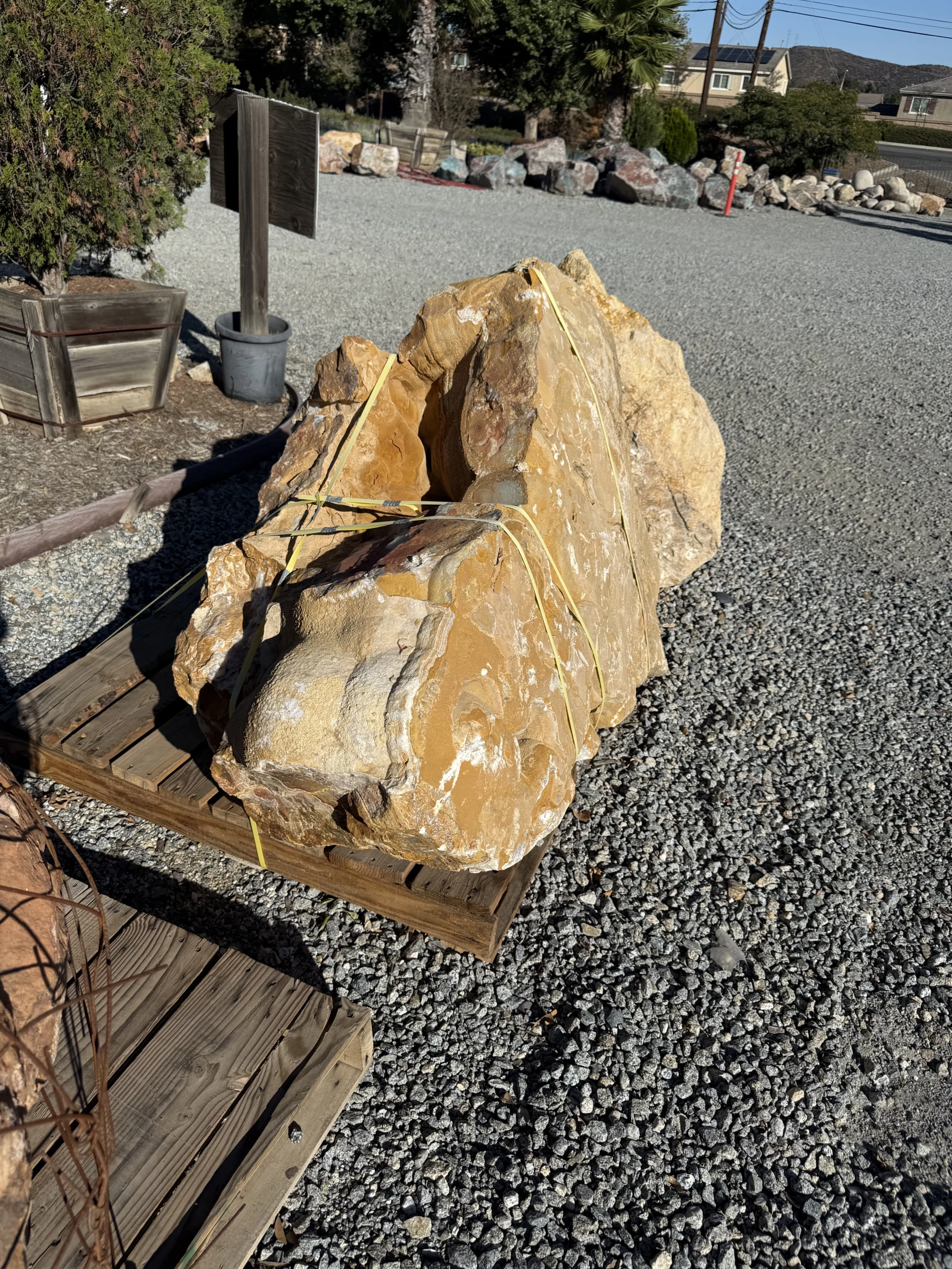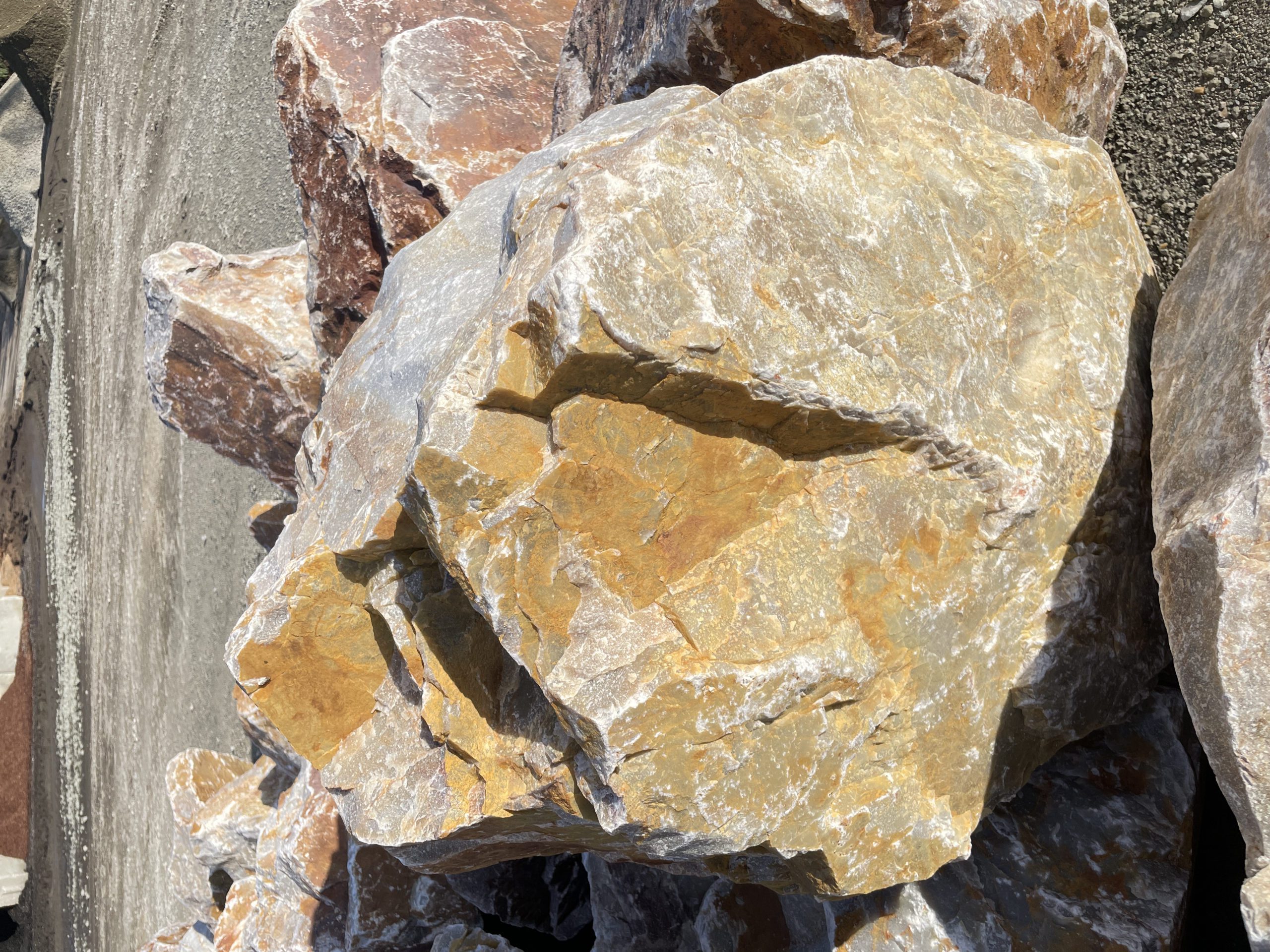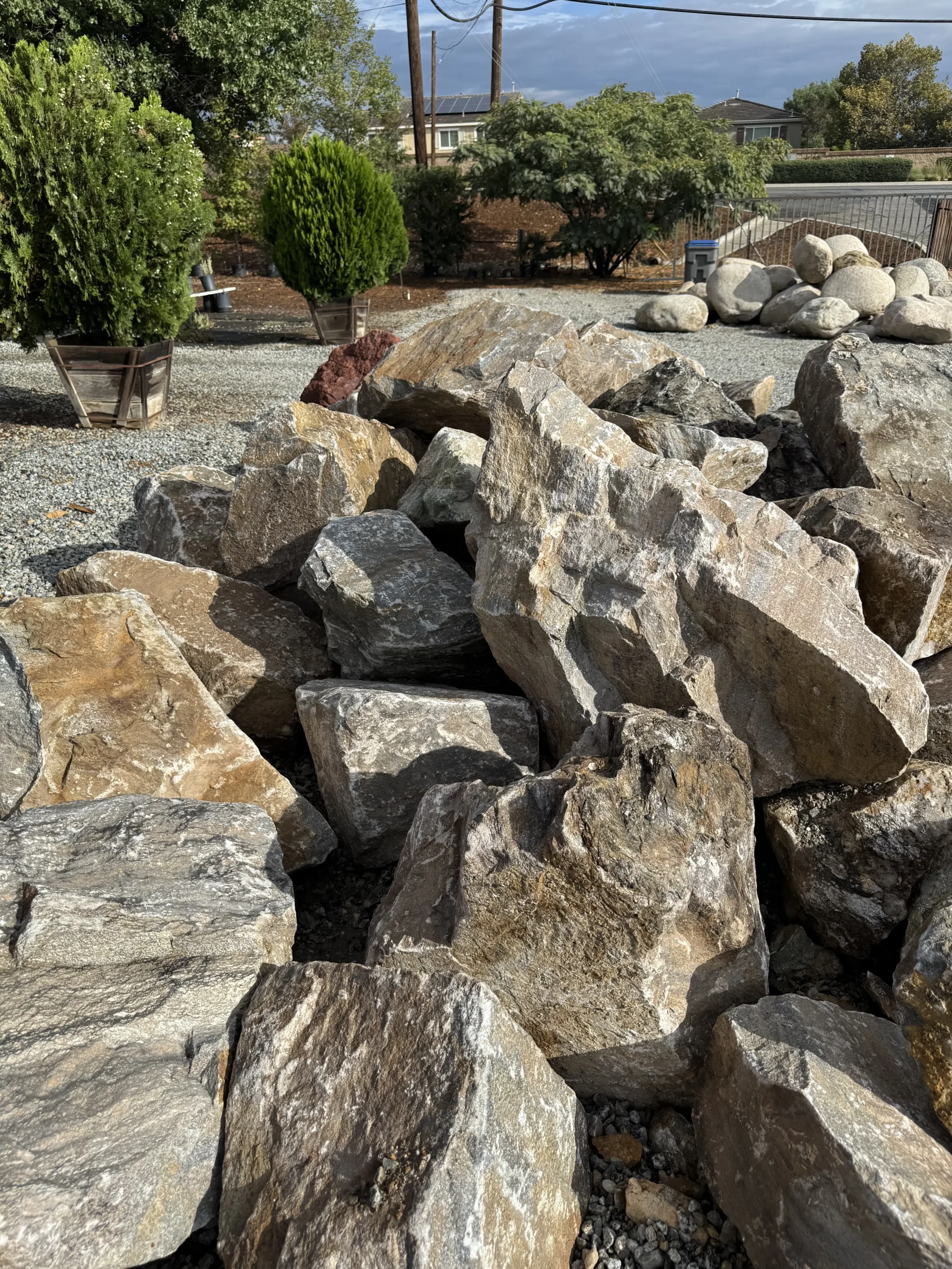 Bring warmth, color, and natural elegance to your landscape with California Gold Boulders. These large, striking stones feature rich gold, amber, and honey tones. Their impressive size and rugged texture make them perfect for accent features, dry creek beds, rock gardens, retaining walls, and large-scale landscaping projects, adding depth, dimension, and lasting visual appeal.